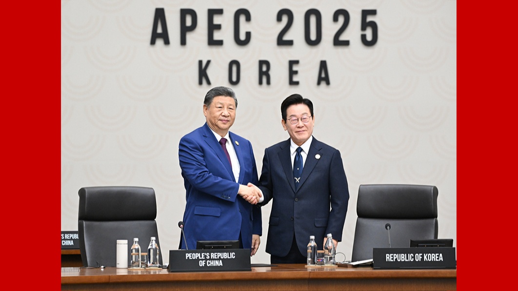 當?shù)貢r間11月1日下午,韓國總統(tǒng)李在明同中國國家主席習近平在慶州博物館舉行會談。